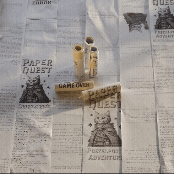 Designed as an experiment in slow interaction, PaperQuest contrasts the infinite speed of AI with the charming limitations of receipt printers. Instead of glossy screens or complex interfaces, players navigate whimsical, child-like fantasy stories using physical buttons. Each choice influences the narrative, prompting the printer to spit out new scenes, illustrations, maps, and unexpected twists.